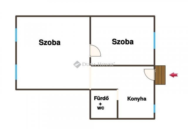 Nappali + háló szoba elrendezésű, szép tágas konyhával. A fürdőszobát néhány éve újíttatták fel, melyben zuhankabit építtettek be és edzett üveg tolóajtó került beépítésre. A szobákban lévő fa parketta nagyon szép állapotú, klíma van a nappaliban, az ablakok jó állapotúak, fából készültek, redőnnyel felszereltek. Fűtése gázkonvektor, a melegvizet villanybojler állítja elő, a villanyóra cseréje folymatban van.