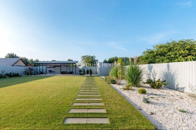 KIZÁRÓLAG IRODÁNK KÍNÁLATÁBAN!Modern Igényes Fiatalos otthon Dabas egyik legjobb részén!Eladóvá vált egy különleges kialakítású, két szintes családi ház Dabas új építésű, nyugodt, mégis központhoz közeli részén. Az ingatlan egy 973 m²-es, összközműves, teljesen körbekerített telken helyezkedik el, mely ideális teret biztosít pihenésre, kikapcsolódásra és akár további fejlesztésekre is.A ház 2017-ben épült, a legmodernebb, prémium kategóriás anyagok felhasználásával. A szerkezete Ytong, a külső falakat 10 cm-es hőszigeteléssel látták el, így nemcsak esztétikus, hanem energetikailag is rendkívül hatékony otthonról van szó. A földszinten egy tágas nappaliétkező, külön konyha, egy hálószoba, fürdőszoba, vendég WC, háztartási helyiség, gardrób, valamint az előtér kapott helyet. A házhoz közvetlenül kapcsolódik a kétállásos garázs is, melyből közvetlenül megközelíthető a lakótér.Az emelt szintre egy modern, függesztett lépcső vezet. Itt egy további hálószoba található saját gardróbhelyiséggel, egy fürdőszoba, valamint egy kellemes, világos nappali, amely igény szerint akár külön szobává is alakítható. A nagy méretű, fedett terasz tökéletes helyszíne lehet baráti összejöveteleknek, családi ebédeknek, nyári pihenésnek.Az otthon melegéről és a meleg víz ellátásáról gáz cirkó gondoskodik, melyet 2025-ben egy korszerű, Ariston márkájú hőszivattyúval is kiegészítettek ez biztosítja az ingatlan kiváló hőkomfortját egész évben, energiatakarékosan. A nyílászárók kiváló minőségűek, és elektromos redőnyökkel lettek felszerelve a még nagyobb kényelem érdekében.Az udvar gondosan parkosított, a fű és növények öntözéséről automata rendszer gondoskodik, amely egy fúrt kútról kapja a vizet. A telek végében található fedett kiülő nemcsak pihenésre szolgál, de kiváló lehetőséget biztosít napelemek elhelyezésére is, ha a jövőben további fenntarthatósági fejlesztésekben gondolkodik az új tulajdonos.Az ingatlan minden apró részlete tükrözi a jelenlegi tulajdonos építőipari tapasztalatát és igényességét ez nem csak egy ház, hanem egy valóban átgondolt, szerethető otthon.Ha a ház elnyerte a tetszését, de még nem rendelkezik a vételár teljes összegével, a Credipass hitelügyintézői örömmel segítenek Önnek díjmentesen, személyre szabott hitelkonstrukciókkal.Hívjon bátran, akár hétvégén is! Ez az otthon csak Önre vár!