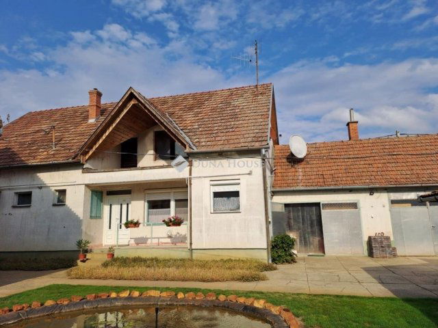Bács-Kiskun Vármegyében Kunbaján bútorozott családi ház eladó.Az ingatlan 90m2 és 1982-ben épült tégla falazattal. Tartozik hozzá kettő szoba, nappali, konyha, étkező, fürdőszoba wc-vel, kamra, előszoba, WC, kazánház, garázs, valamint a tetőtér beépíthető. Az otthon melegéről gázkonvektor, vegyes tüzelésű kazán, infrapanel gondoskodik. Beszerelésre került egy hűtő-fűtő klíma is. Az ingatlan világos, a hőszigetelt nyílászáróknak köszönhetően. A padlózat burkolata parketta és járólap. Az ingatlanban megtalálható H tarifás óra, illetve a villany- és vízhálózat korszerű állapotban van. A homlokzat 5 cm-es hőszigetelő burkolattal rendelkezik.Az ingatlan 1023m2-es telken helyezkedik el, ahol megtalálható 400m2-es füves terület, ipari árammal működő öntözőrendszer, fúrtkút, halastó, és egy 10mx5m-es teljes gépészettel ellátott medence. Az udvarban helyet kapott egy melléképület is, ami tárolóként is használható.A faluban megtalálható óvoda, általános iskola, boltok, orvosi rendelő, gyógyszertár.