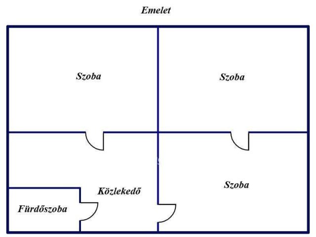 A földszinten egy szoba, konyha, kamra, előtér és WC. található, az emeleten három szoba, előtér és fürdőszoba helyezkedik el.