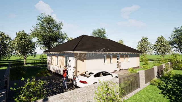 A ház elrendezés abszolút átgondolt, élhető, nettó 110 nm, bruttó 127 nm nagyságú, a telek mérete 820 nm.