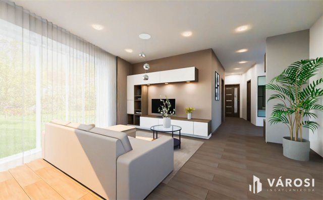 Eladó Hódmezővásárhelyen, Új-kishomokon a Mező utcában, új építésű 3 lakásos sorházban, 79,42 m2 hasznos alapterületű tégla ház. Az amerikai konyhás, nappali + 2 hálószobás ház remek tájolású, kényelmes életteret biztosít 3-4 fős család számára. Az ingatlanhoz ~ 420 m2 önálló kertrész tartozik, valamint társasház részére tervezett közös (6,00m x 3,00m) medence és napozótér.