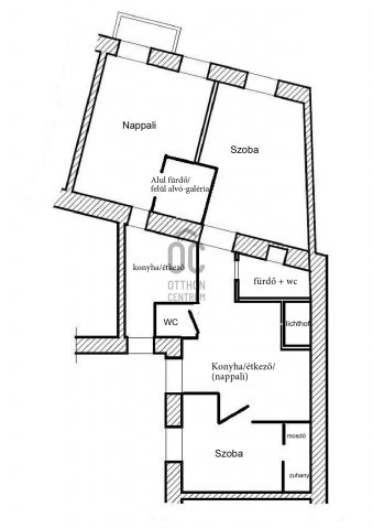 2. lakrész: 35 nm + 4 nm galériás garzon, 2 nm-es erkéllyel, utcai kilátással