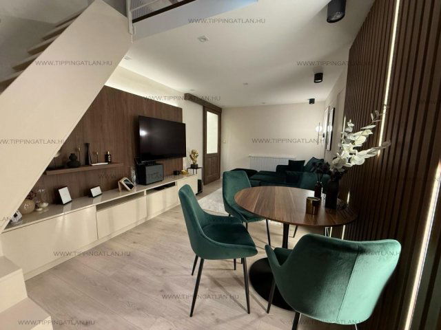Nappali + félszoba, ami jelenleg gardróbszoba. Mindkét helyiség feletti galériákon hálószobák lettek kialakítva. A lakás klimatizált. Valódi kulcsrakész állapot – nemcsak berendezett, hanem teljesen felszerelt.