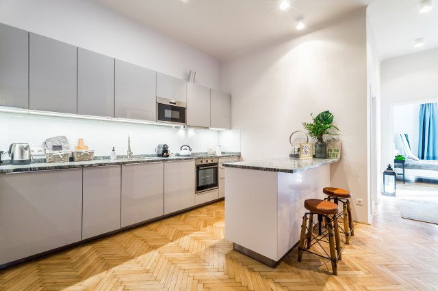This sunny apartment is located on the 5th floor of a 6-floor building with elevator. Windows are either overlooking Nagydiofa street or to the quiet courtyard.