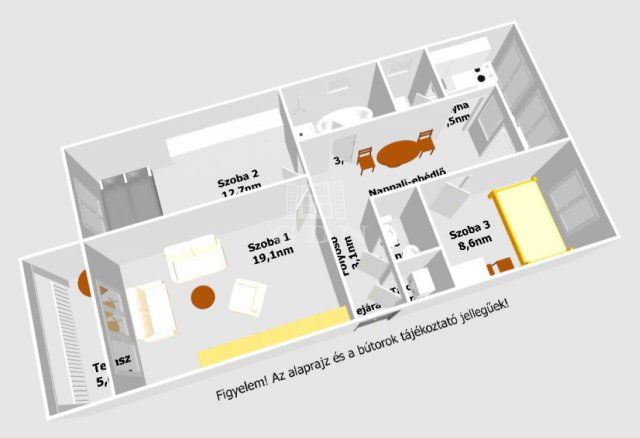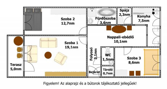 A lakás hasznos alapterülete 72nm, melyben található: