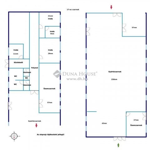 -Irodák, szociális helyiségek, folyosók, több oldalról is megközelítehető bejárattal