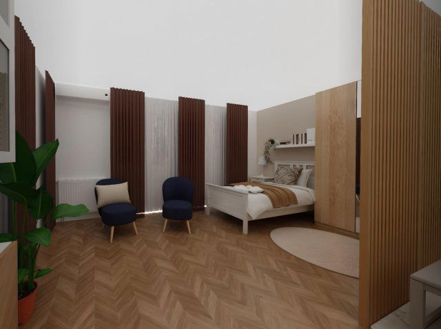 A lakás jelenleg bútorozatlan állapotban elérhető, ugyanakkor egy berendezési terv is rendelkezésre áll virtuális látványtervekkel, amely alapján a tér berendezése jól elképzelhető. A nappali a látványterv szerint leválasztható, így akár külön élettérként is funkcionálhat. Igény esetén a lakás bútorozottan is bérelhető, ebben az esetben a bérleti díj: 350 000 Ft/hó.