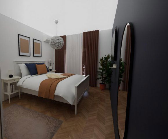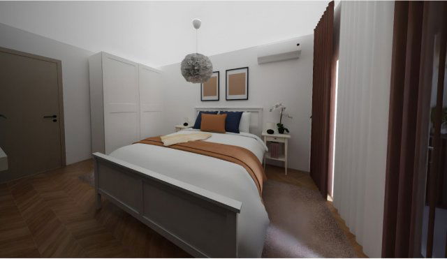 The apartment is currently offered unfurnished, but a virtual furnishing plan is available to help visualize the layout. According to the concept, the living room can be separated to create an additional private space. Upon request, the apartment can also be rented fully furnished, in which case the monthly rent is HUF 350,000.