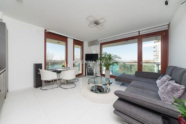 Lenyűgöző kilátással a Budai hegyekre és a Dunára!Marina Parton, panorámás,70 nm alapterületű +38 nm teraszos.,3 szobás,Ny-i tájolású, ízlésesen felújított magas emeleti igényesen bútorozott lakást kínálunk bérbevételre.Az ingatlan 5.emeleten helyezkedik el, amerikai konyhás-nappali és két tágas hálószoba elrendezéssel, fürdővel és külön mellékhelyiséggel. A nagyméretű terasza, valamint a nappali és hálószoba a Dunára néz.A lakás frissen, teljeskörűen, minőségi anyagokkal felújított. Az összes ablak elektromos redőnnyel szerelt, az ajtókon szúnyogháló. A burkolatok és a beépített konyhabútor magas minőségű.Teremgarázs hely és tároló a bérleti díj részét képezi.A társasházban 24 órás portaszolgálat működikA környék nagyon jó közlekedéssel rendelkezik, a komplexumnak BKV hajókikötője is van, így nagyon gyorsan el lehet jutni a város központjába, miközben autóban ülés helyett élvezheti a dunai kilátást. M3 metró megálló a Duna plázánál 4 percre található! A lakópark területén több bevásárlási és fürdőzési lehetőség is van, illetve iskola, óvoda, játszótér, kávézók és étterem, szauna és fitness terem, szolárium, fogorvosi és orvosi rendelő, gyógyszertár stb. is található a közelben. A lakóparkhoz séta távolságban található yacht kikötő és club és a Duna pláza.Ha az ingatlan felkeltette érdeklődését, várom megkeresését elérhetőségeimen.