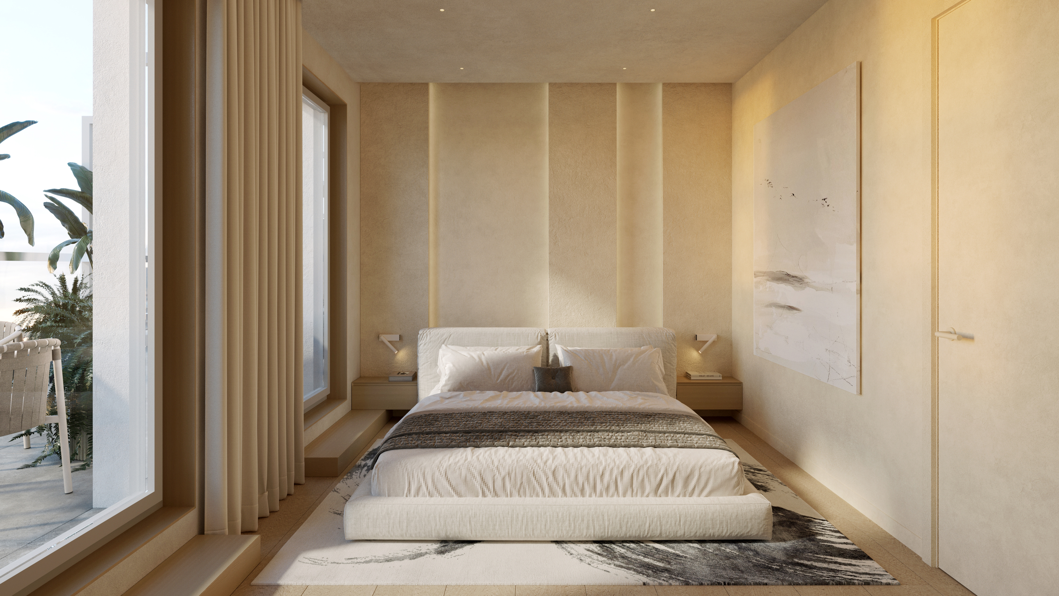 Nagy üvegfelületű, háromrétegű műanyag nyílászárókat építünk be, melyeket minden hálószobában redőnnyel és szúnyoghálóval egészítünk ki. A hőszivattyúról működtetett helyiségenként szabályozható mennyezeti hűtés-fűtés rendszerünk sok előnye mellett zajmentes, egységesen oszlatja el a hőt és egészségesebb, mint a klímával való hűtés.