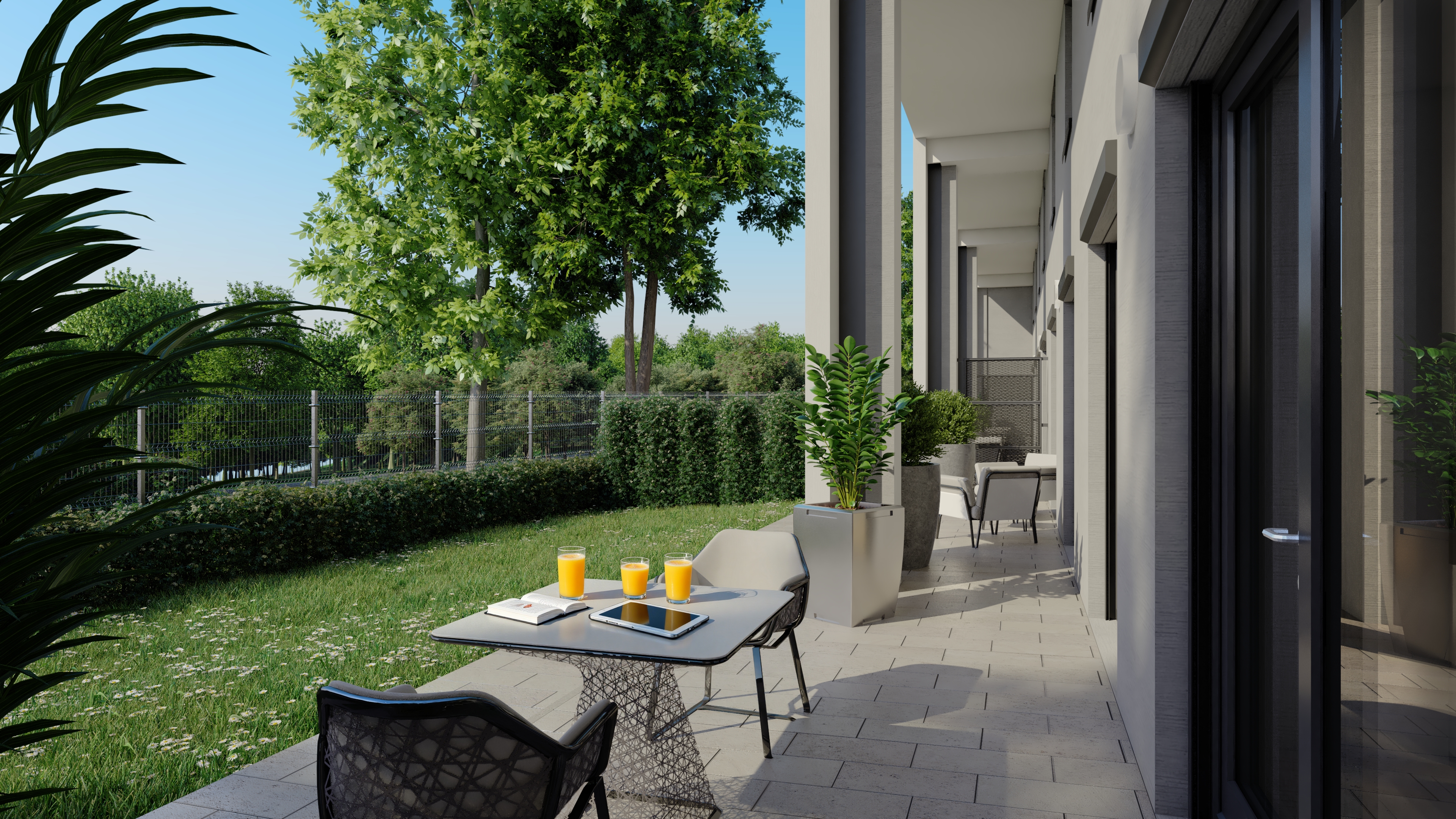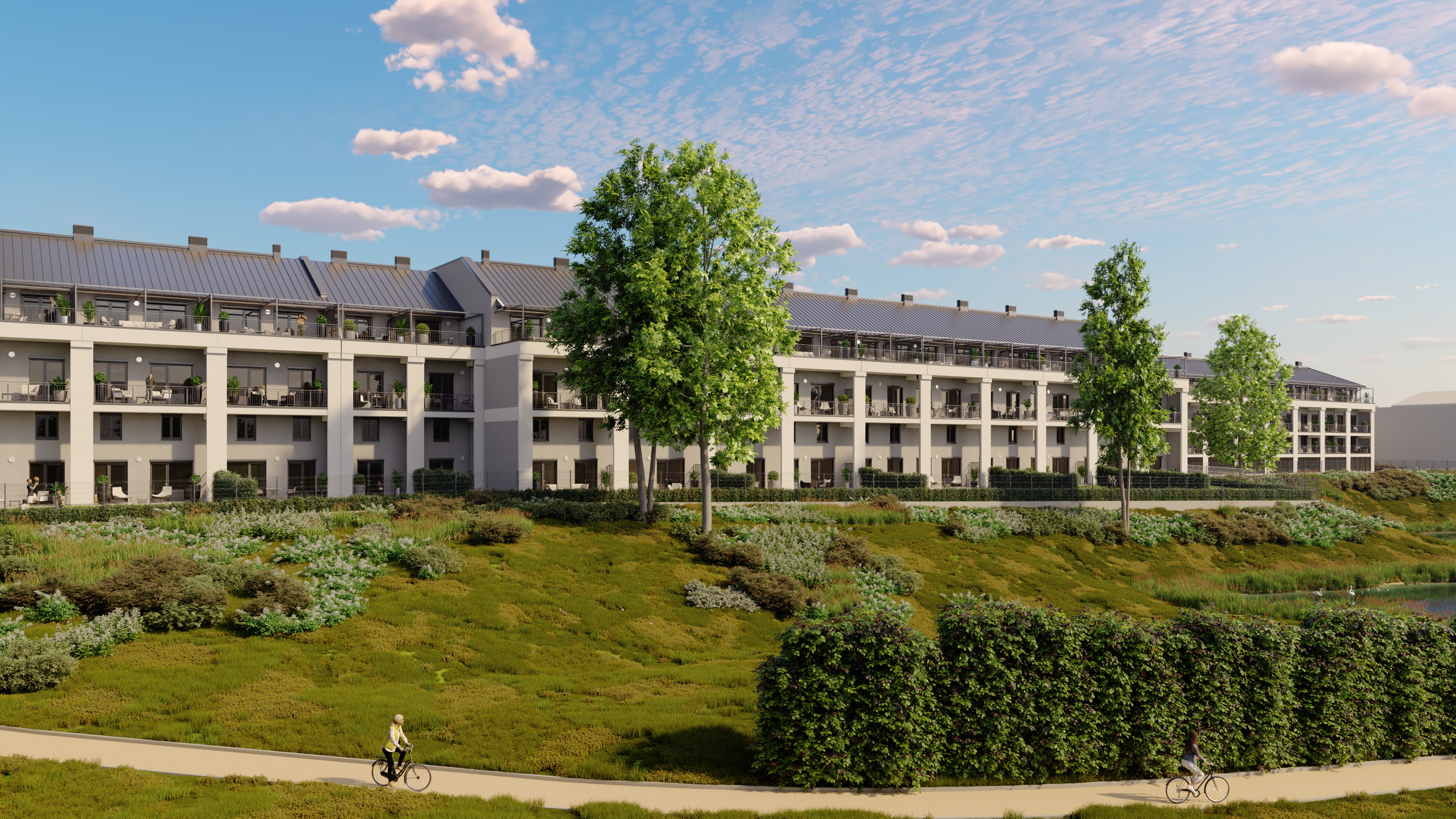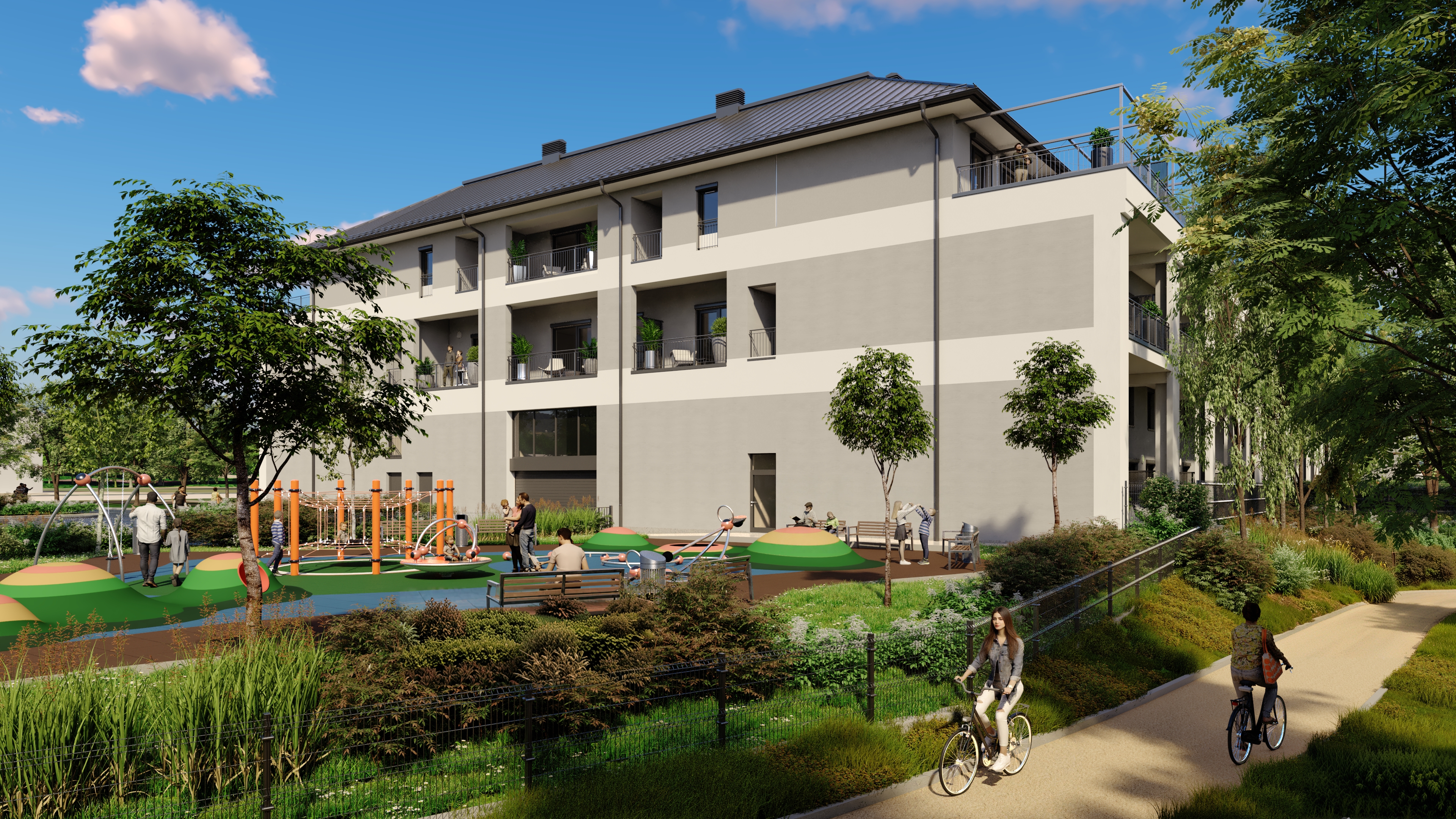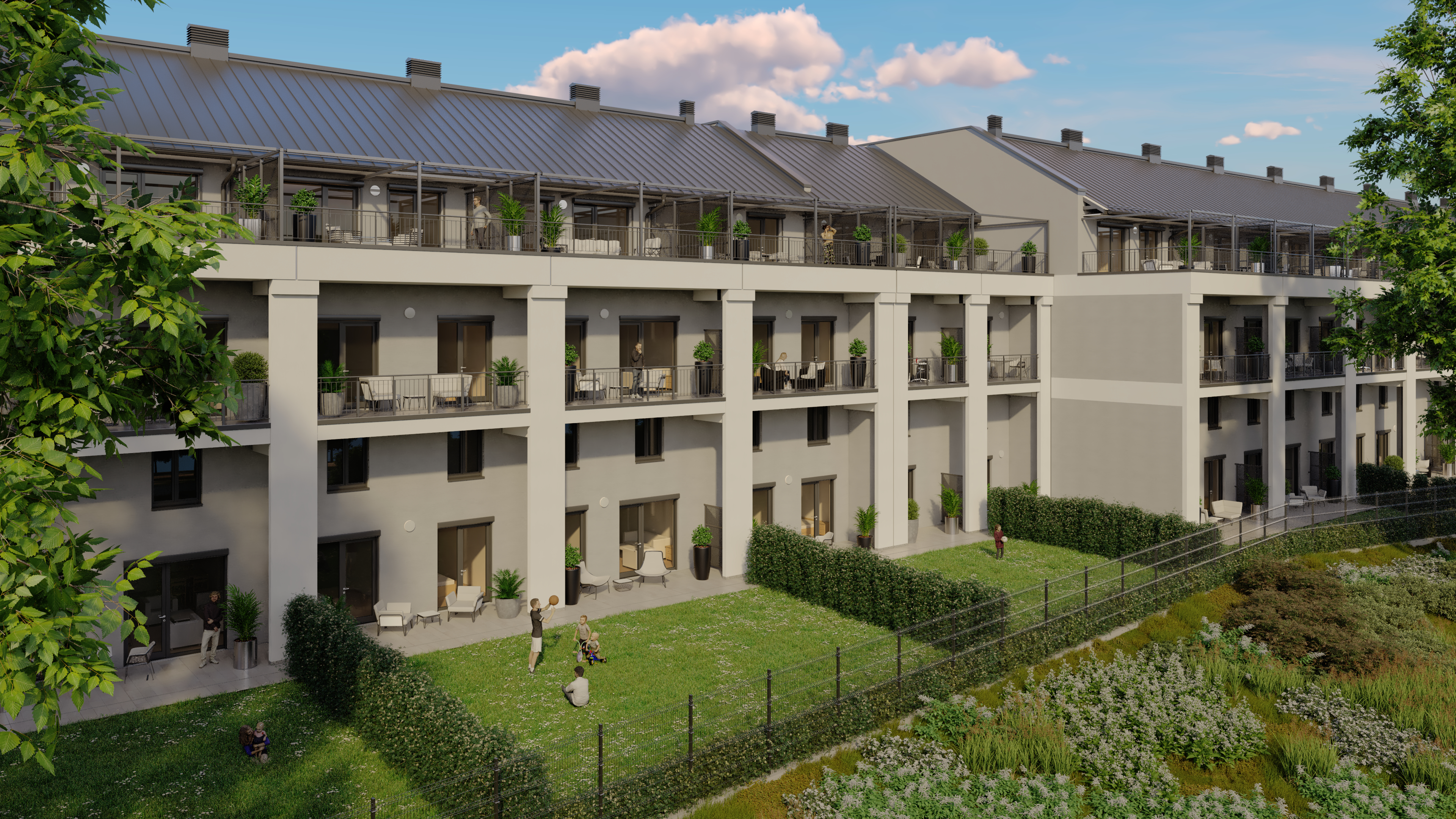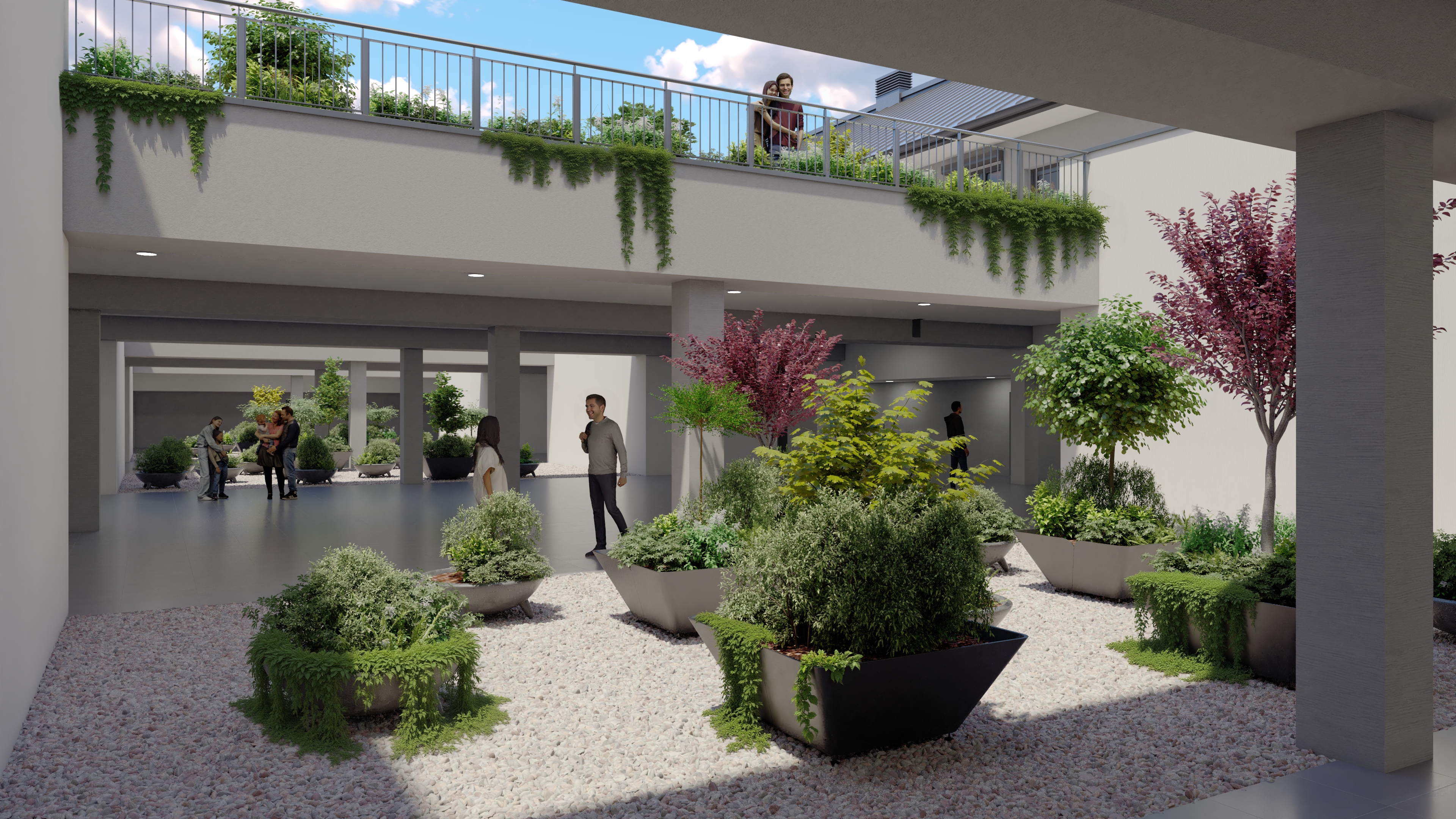 A lakópark kialakításánál fontos szempont volt, hogy ne csak otthonok, hanem egy élhető, közösségépítő környezet szülessen. A parkosított belső udvar pihenőhelyeivel, játszóterével és gondozott zöldterületeivel olyan kültéri tereket kínál, amelyek pihenésre és szabadtéri tevékenységekre is lehetőséget adnak. A belső átrium világos, nyitott kialakítása barátságos, közvetlen hangulatot teremt.