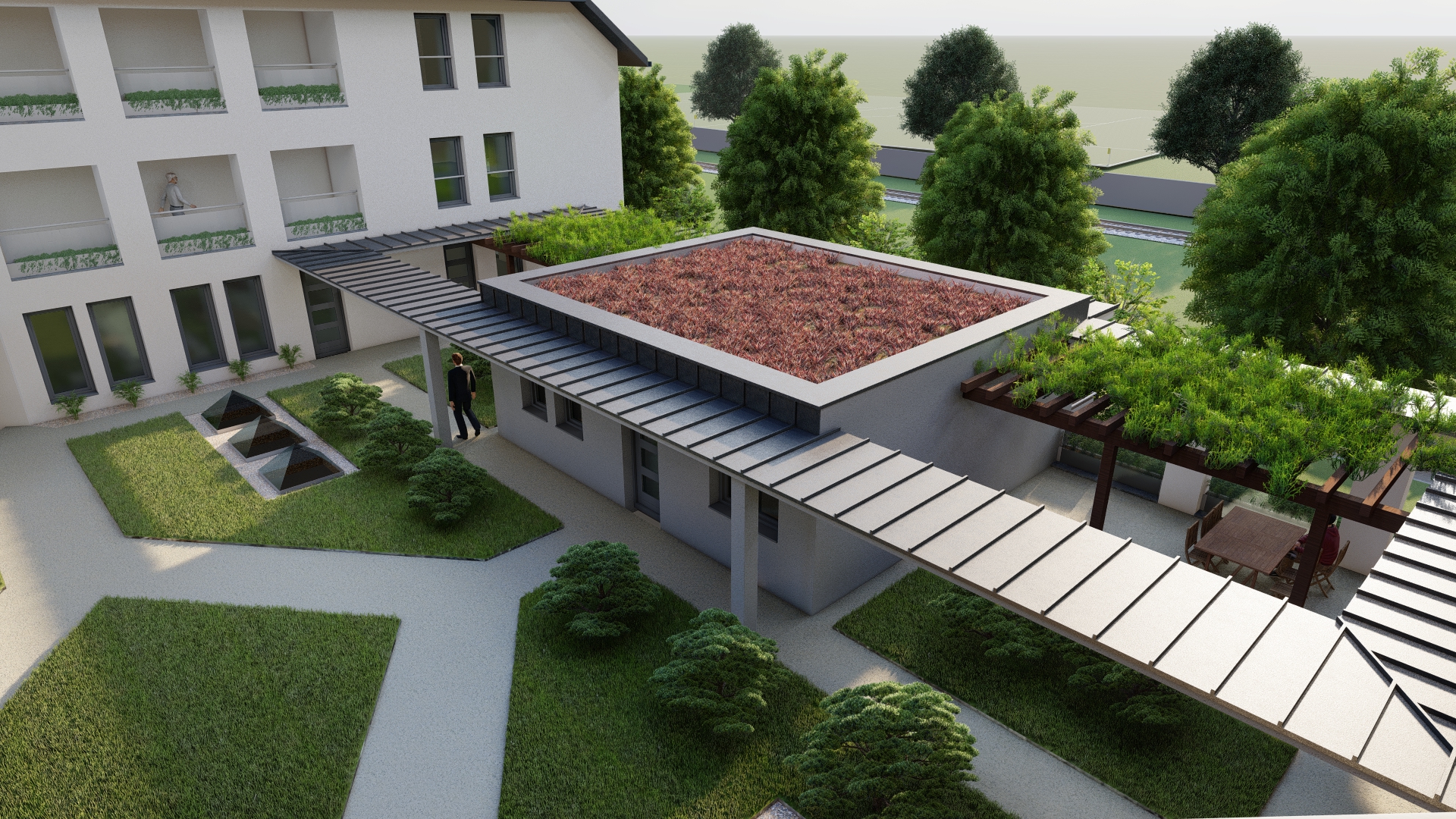 Az épületben talajszondás hőszivattyúk biztosítják a hűtést, a fűtést és meleg víz előállítást. A hőszivattyúk energiaszükségletének egy részét a tetőre helyezett napelemek termelik meg.