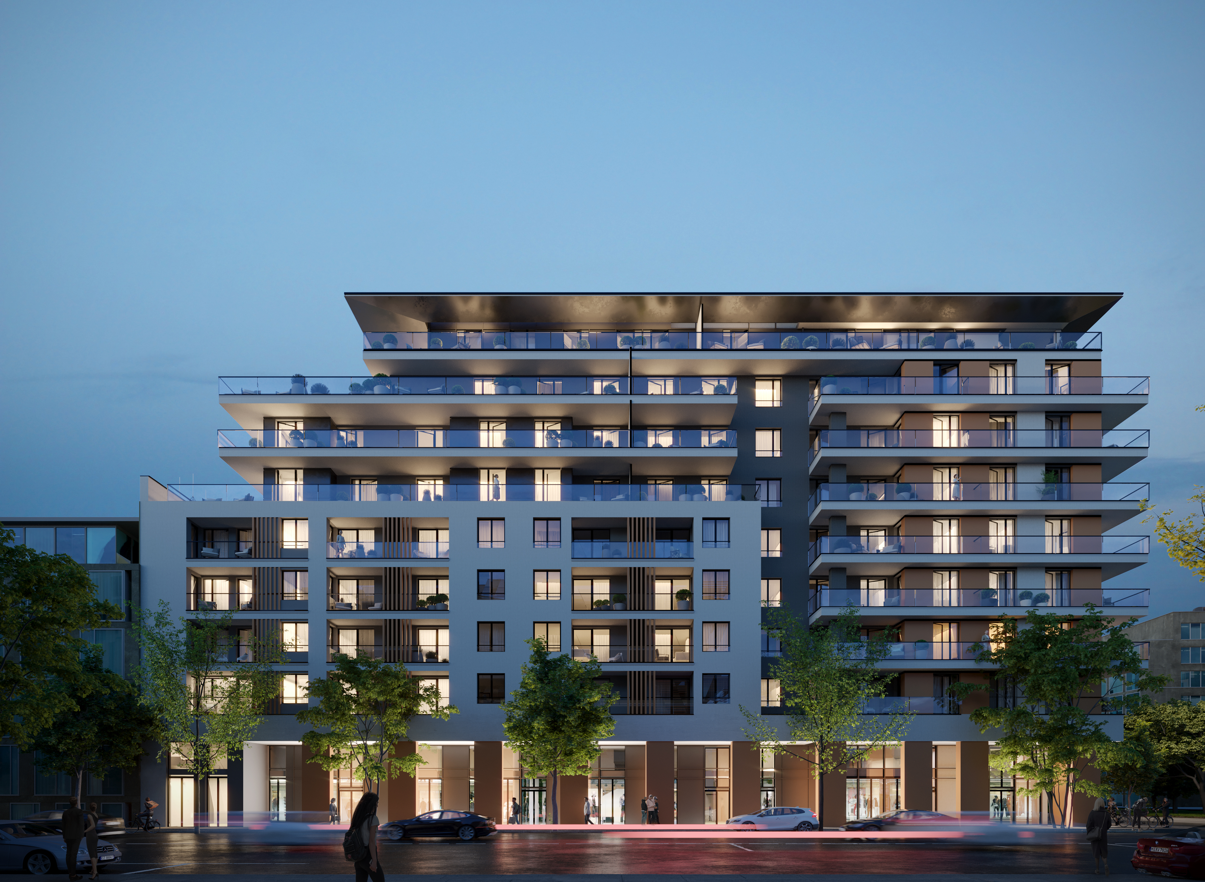 A 9 emeletes új lakópark nem csupán külsőleg egy modern lakóház, de összetételében is minőségi anyagfelhasználás jellemzi. Homlokzatát modern jegyekkel ruháztuk fel, amely kétségkívül környezete egyik központi motívuma lesz.