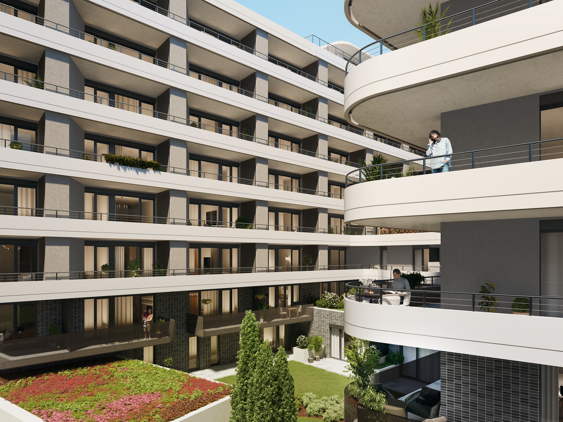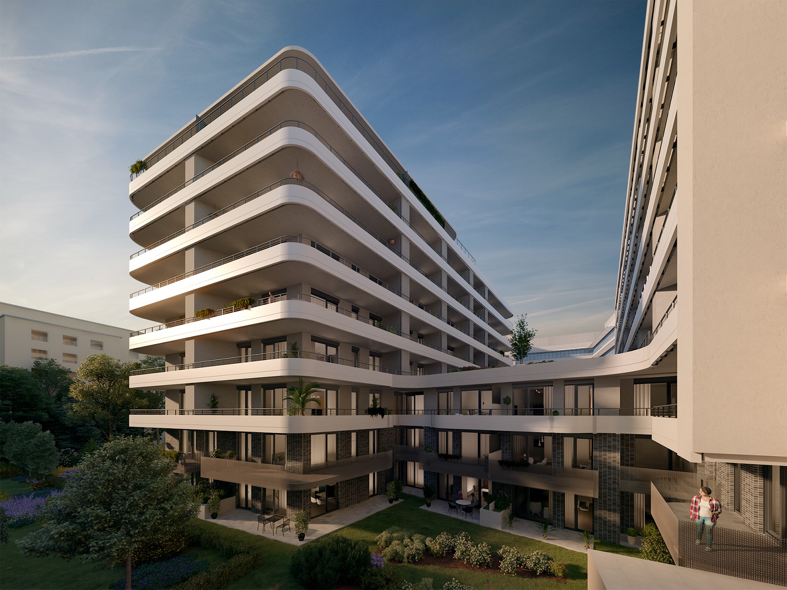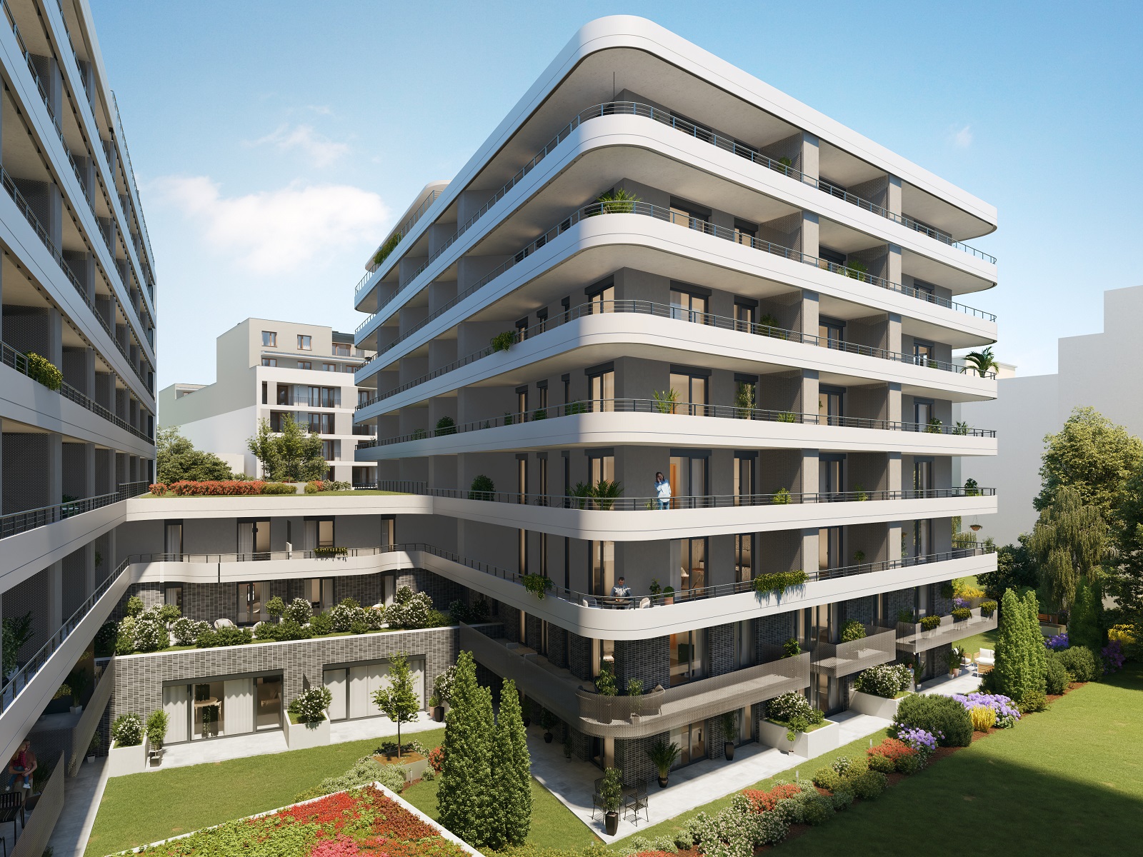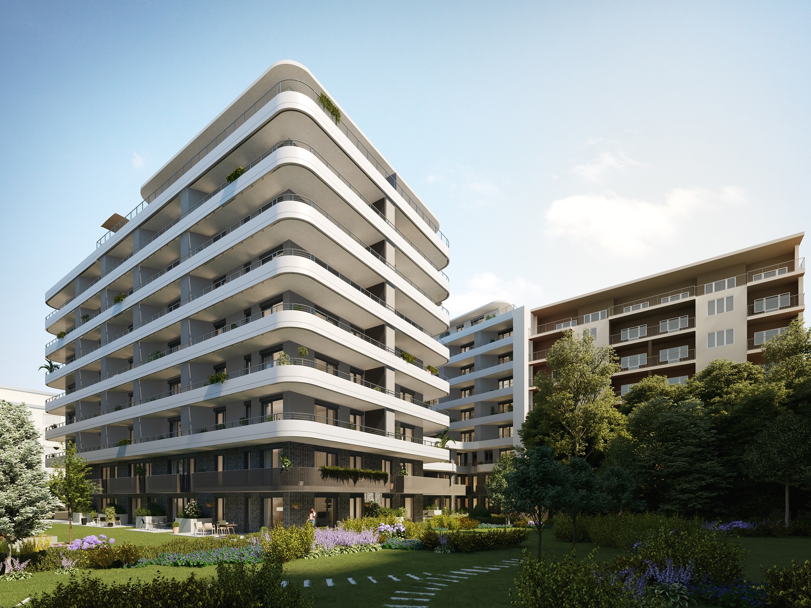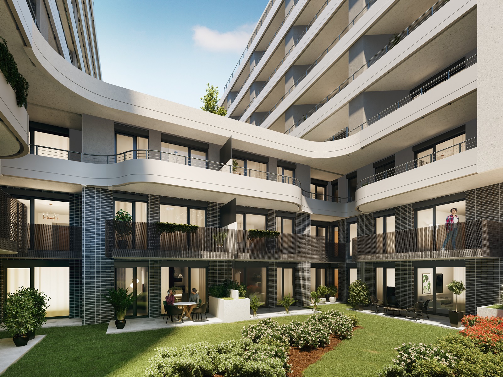 Az elérhető lakások többsége a csendes belső parkra néz. Számunkra kiemelten fontos volt, hogy közel hozzuk a természetet és a zöld felületek látványát és a lakások többségéből ez elérhetővé váljon. Az épületen található nagyméretű ablakok és erkélyajtók a szobákba is beengedik a belső parkok zöld növényeinek látványát és rendkívül világossá teszik a lakásokat.