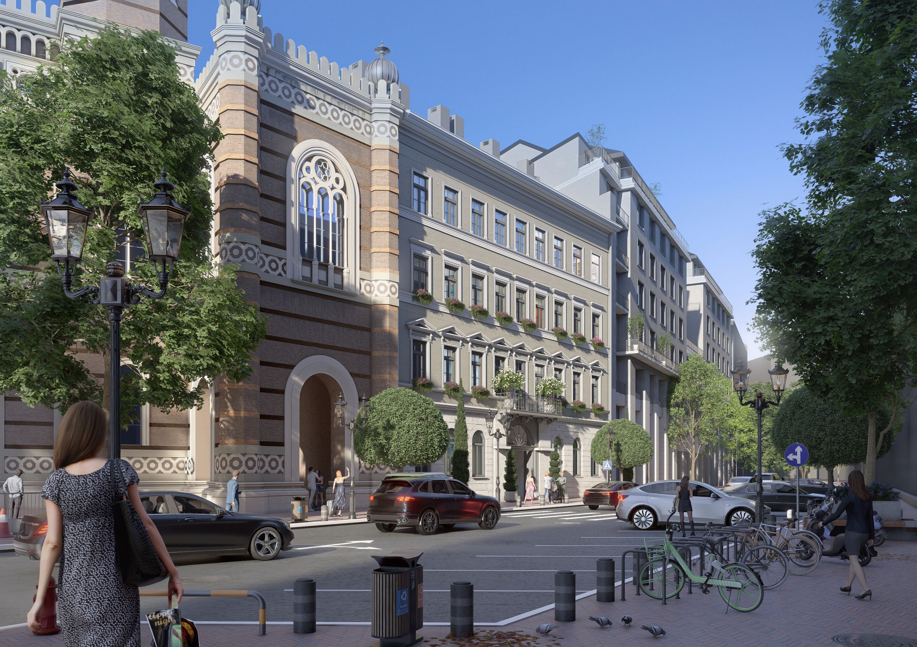A híres Dohány utcai zsinagóga mellett a Seven Pearl a környék egyedi jellegét és gazdag történelmét megtestesítve varázsolja újjá ezt a régóta elhagyatott épületet.