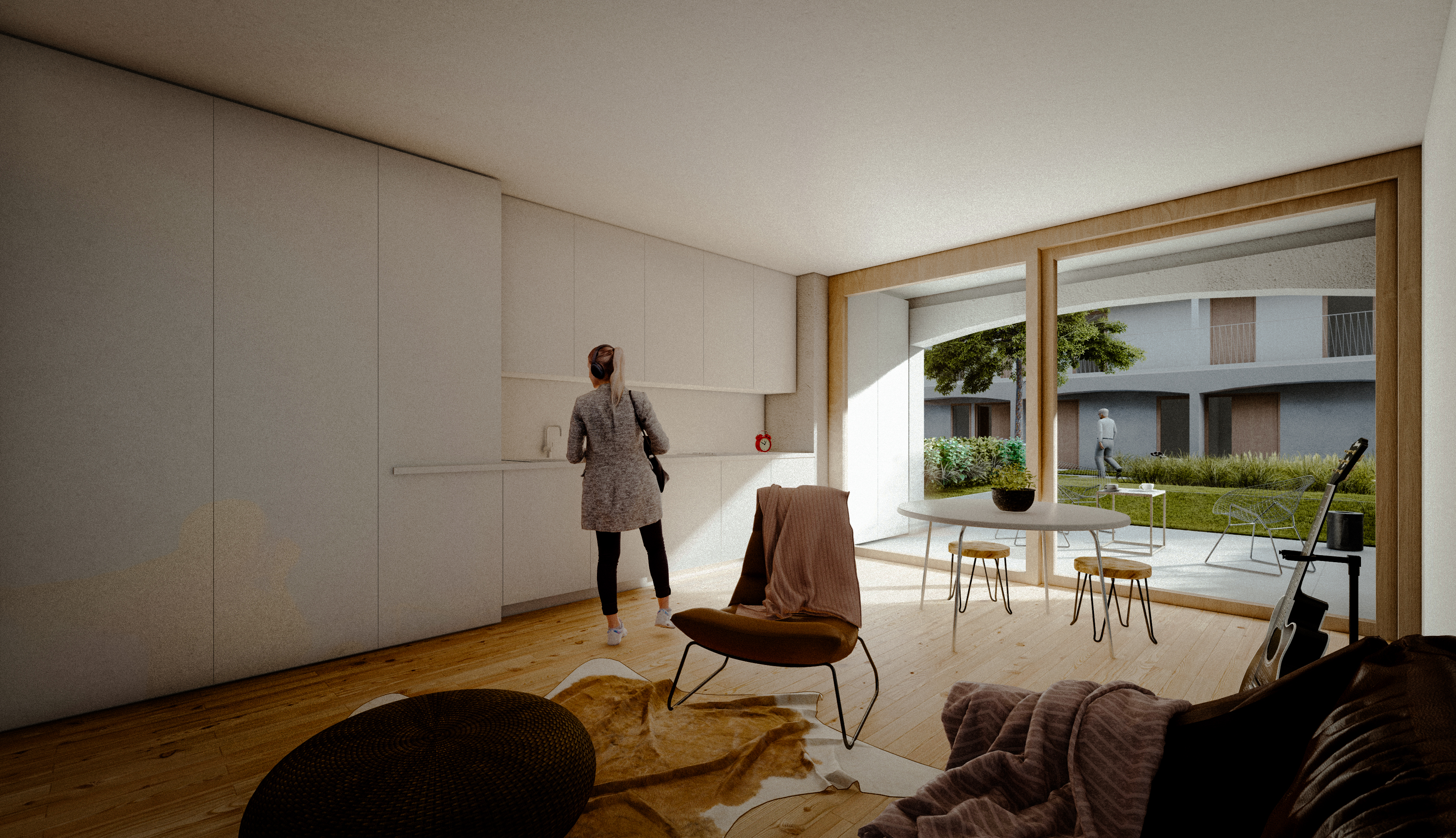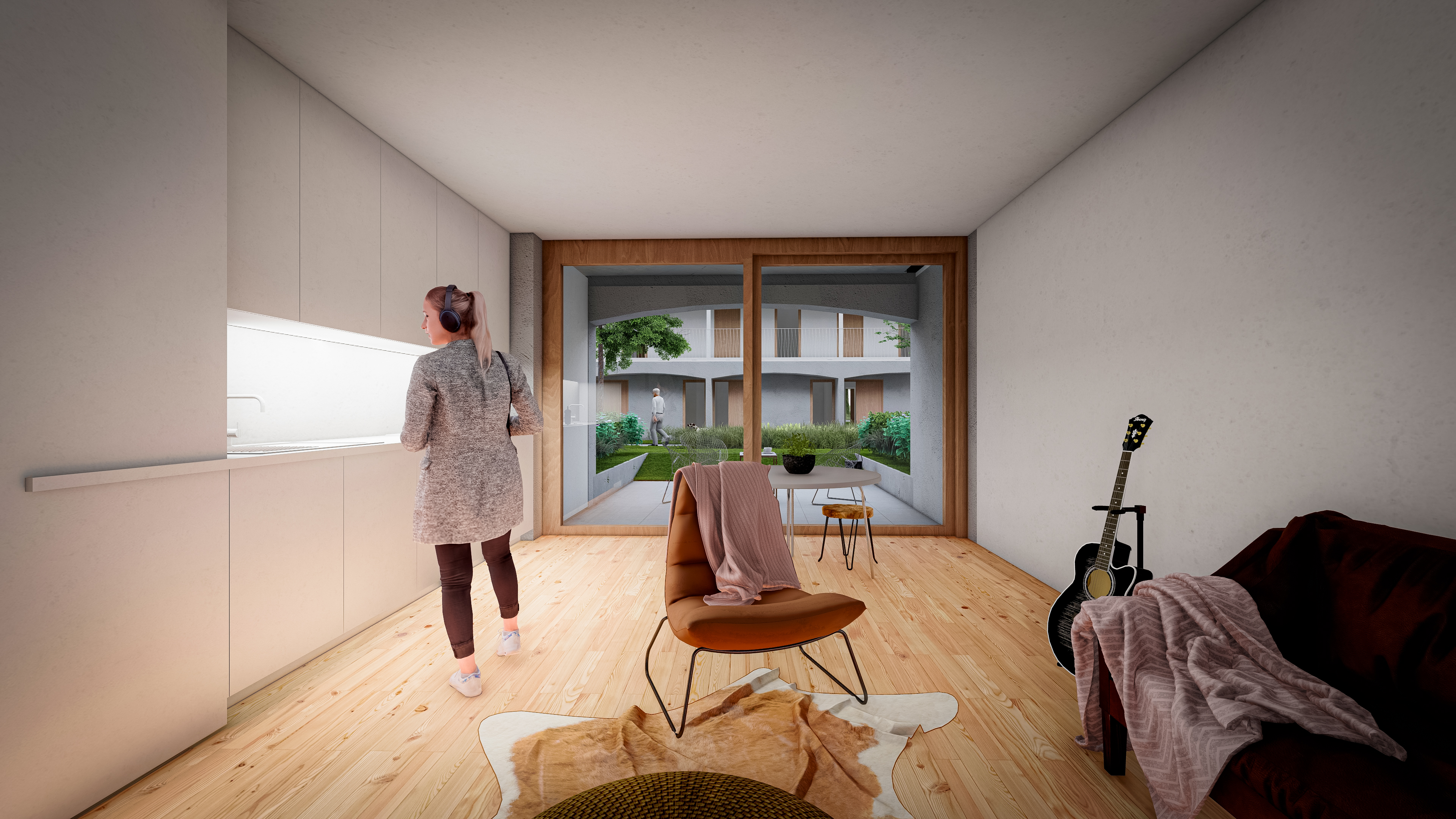 A projekt keretében három földszint + 2 emelet + tetőtér magasságú épületekben, 32 db lakás kerül kialakításra.