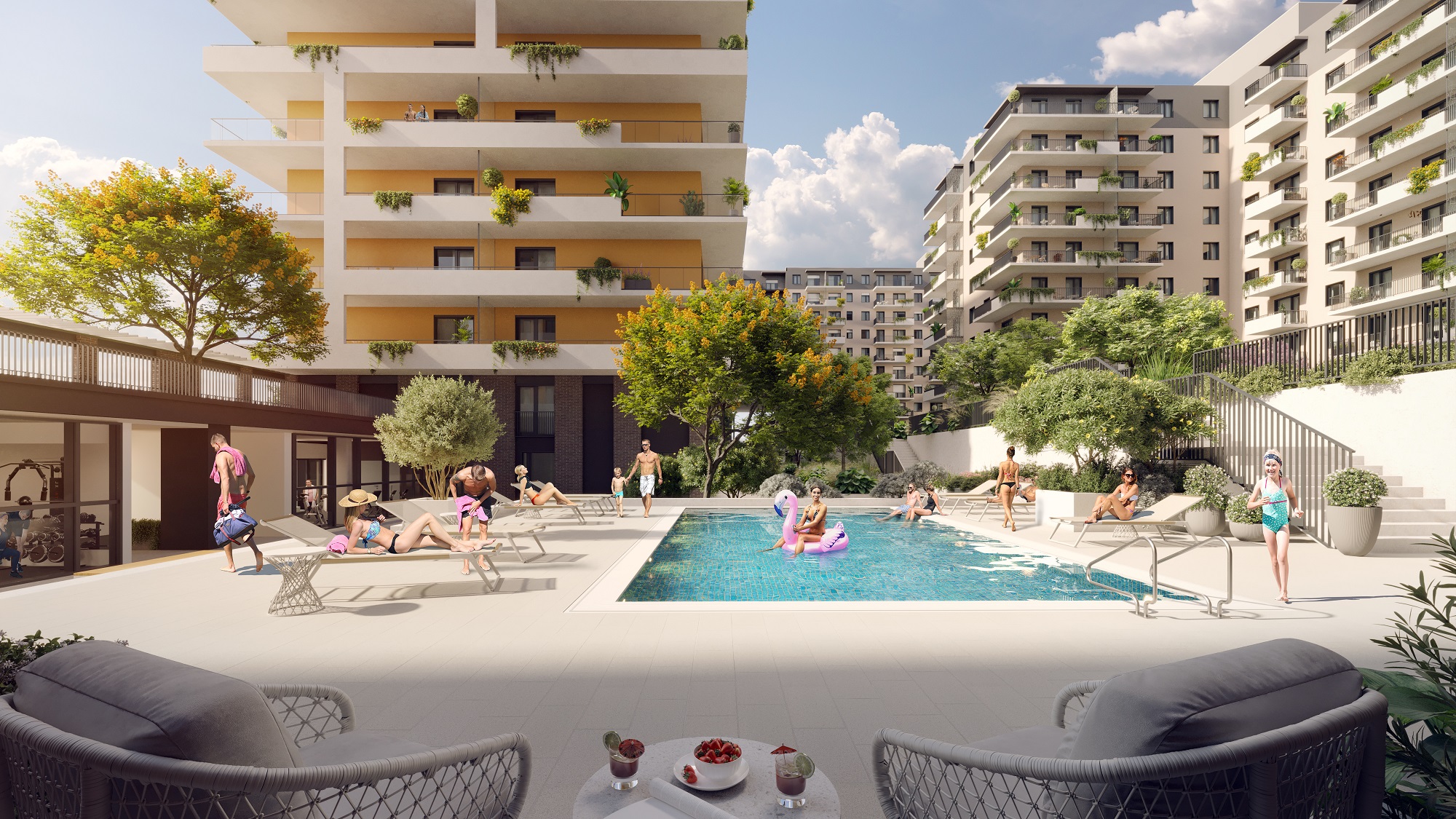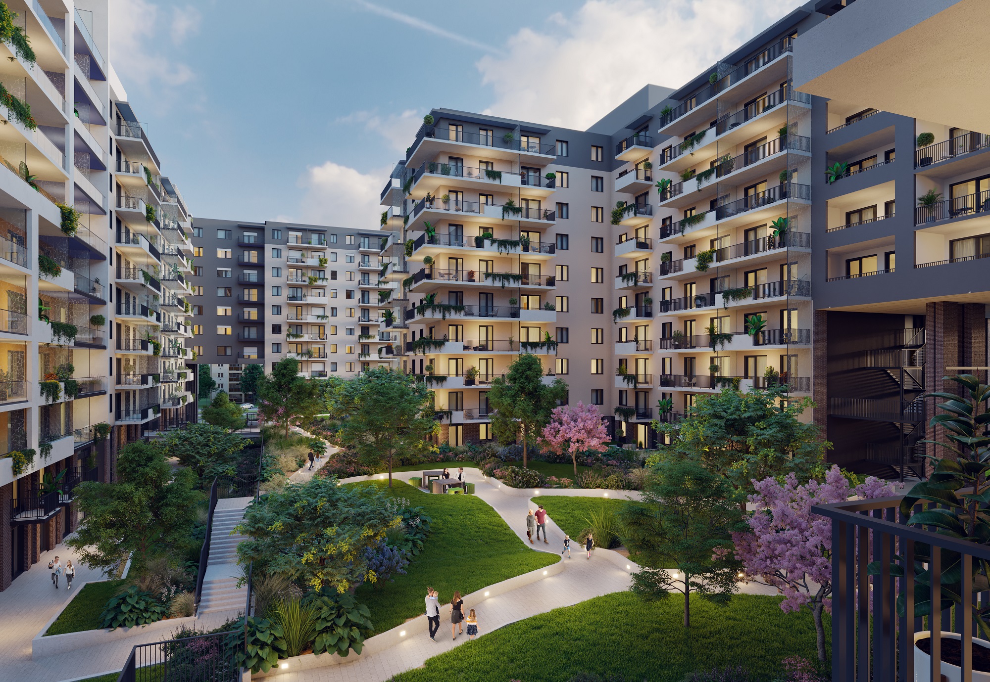 Az első ütemben 257 kertkapcsolatos vagy erkélyes otthon kerül kialakításra: a stúdió-, két-, három- és négyszobás lakások mellett, a legfelső szinten exkluzív penthouse lakások találhatók, melyekhez privát medence is tartozik.